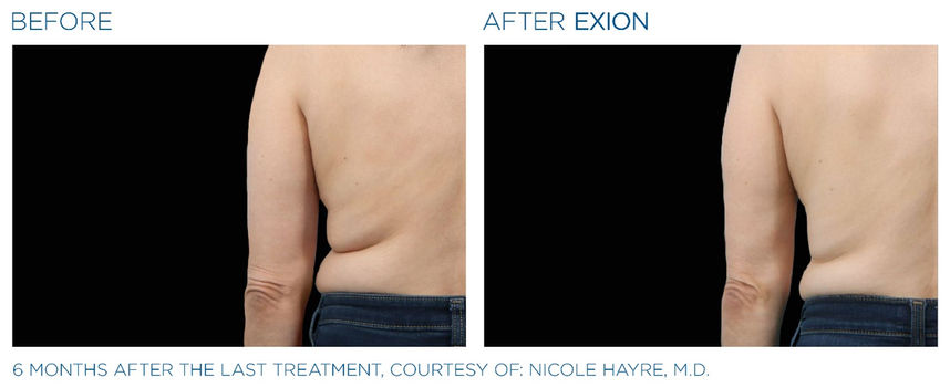 Exion Body uses a unique handpiece applicator that delivers energy to reduce fat by eliminating fat cells through apoptosis. The Exion Body applicator helps targets stubborn fat deposits in specific areas such as bra fat, back fat, love handles and above the knees. The body will naturally eliminate these fat cells resulting in a reduction in fat volume in the treated area.